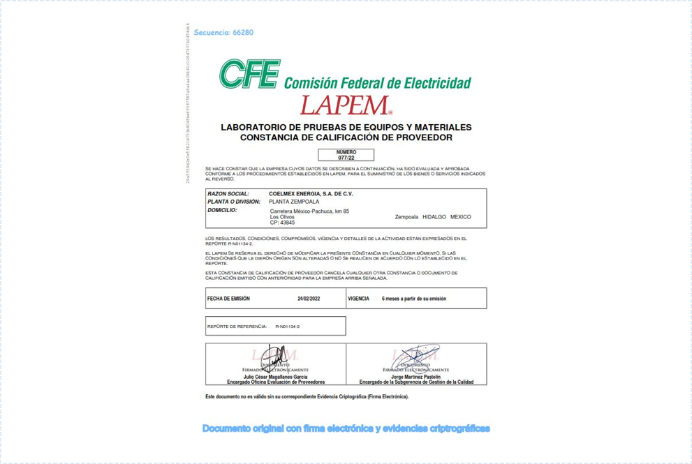 COELMEX ENERGIA S.A. DE C.V. Tiene el compromiso de satisfacer las necesidades de nuestros clientes en el sector eléctrico, ofreciendo productos y servicios de calidad con personal preparado y altamente especializado. Estamos comprometidos en cumplir los objetivos de la organización basados en los requisitos de las partes interesadas y de la norma ISO 9001:2015, buscando siempre la mejora continua del sistema de gestión de calidad que nos ayude a cerrar cada proyecto con éxito.